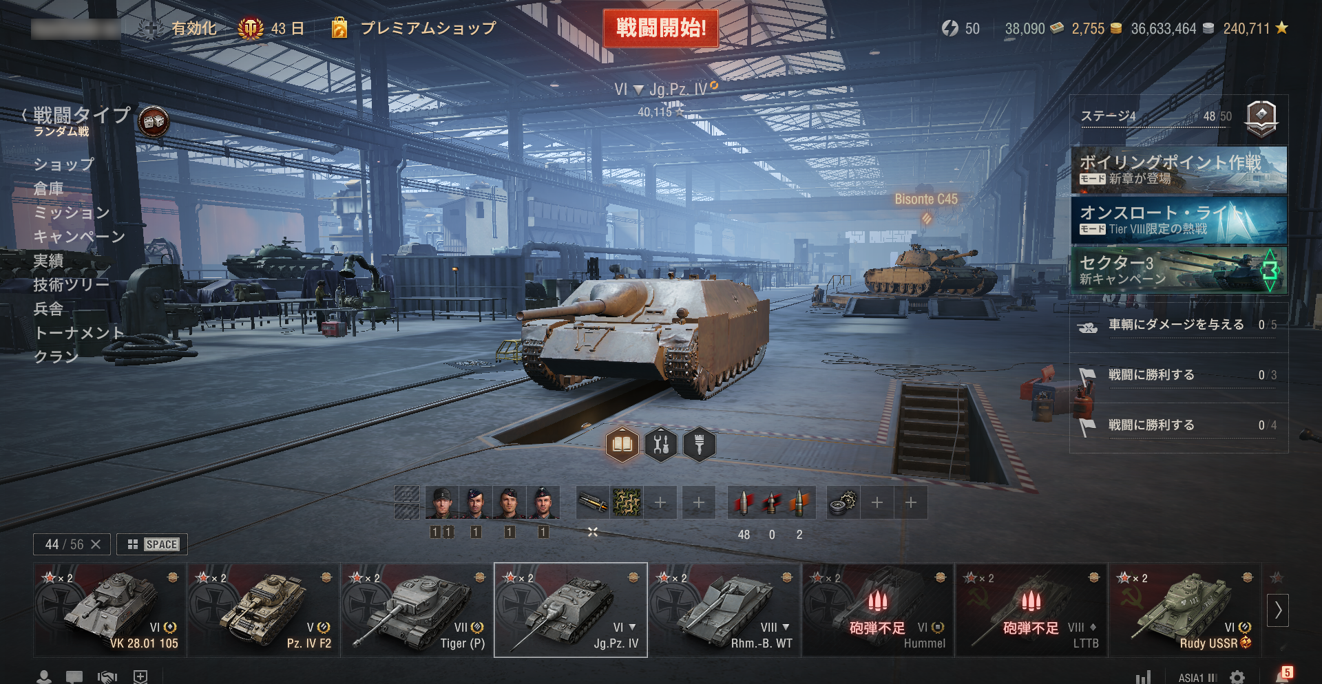 ガレージ画面とか言っていたメイン画面が戦車工場になった訳ですが広くなった感はあります。はい。
