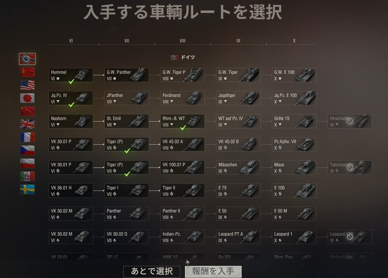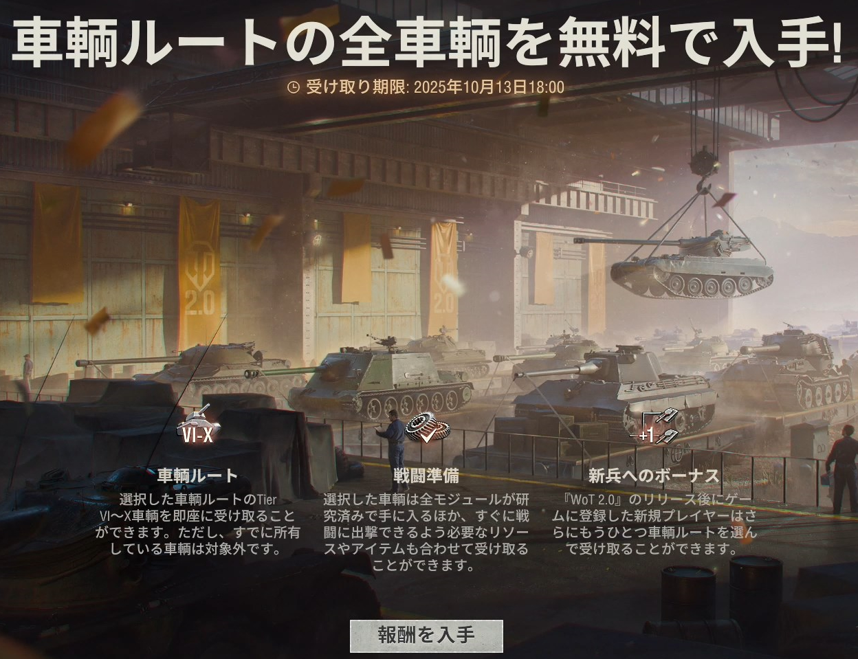 話し戻ってアップデートしたクライアントでゲームを起動すると今度はある車両1ルートのTier6-10までの車両を貰えるという特典が得られます。