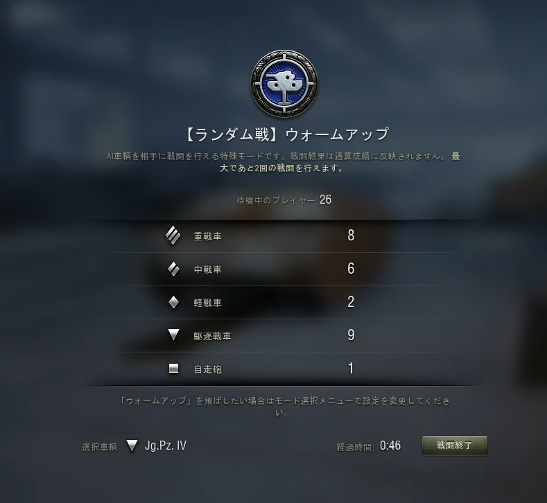 とりあえず良く分からず戦闘すると最初は、ウォームアップになりました。AIと戦闘するのかな。久しぶりなのとアップデートの変化を知るためにそのまま戦闘しましたが、まぁ、前と一緒かな。